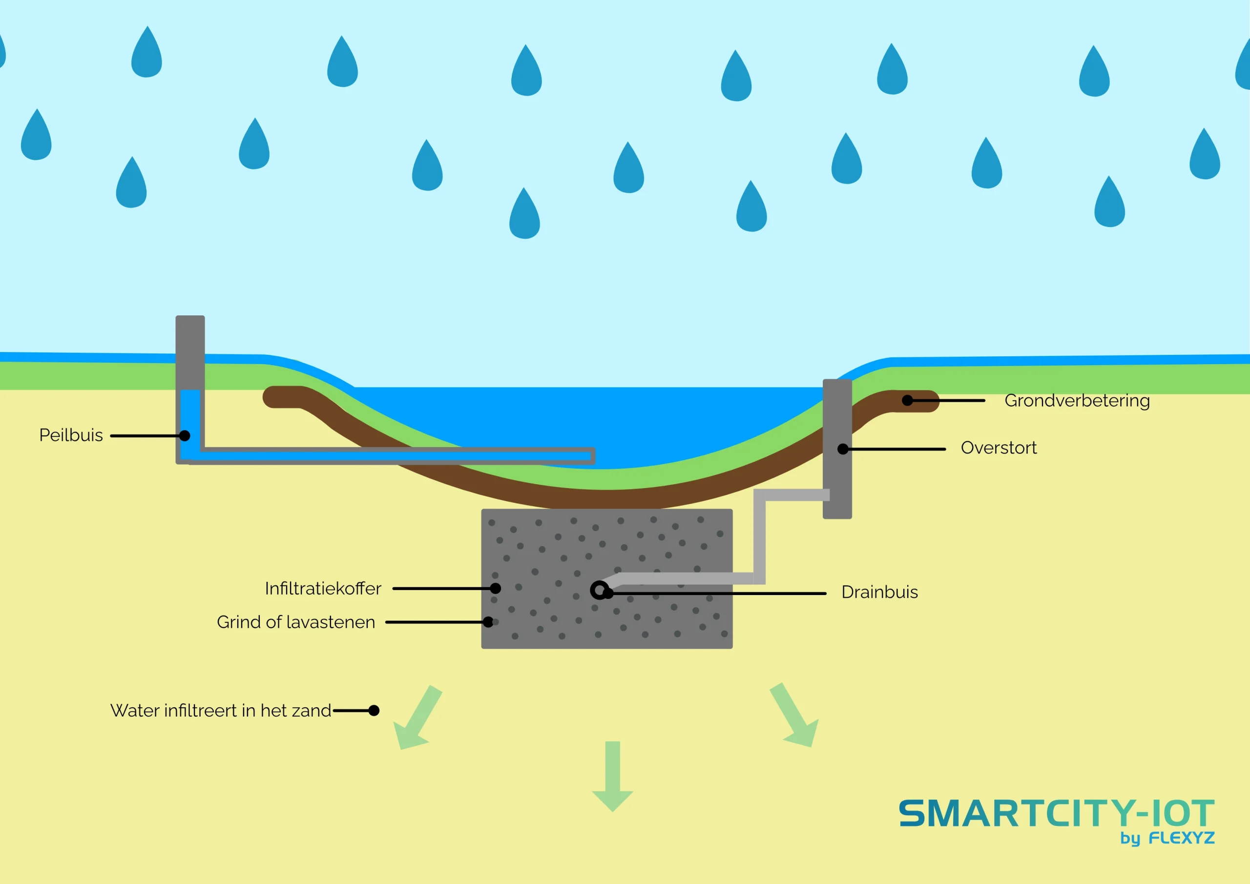 - Waterhoogte meten om de infiltratie- en ledigingstijd te volgen.