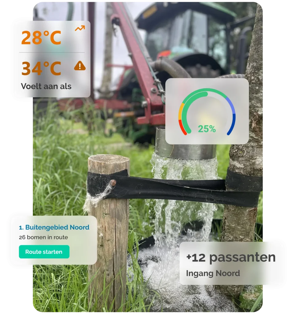 Je wilt weten waar bomen het moeilijk hebben, welke afvalbakken bijna vol zijn en hoe de temperatuur zich ontwikkelt tijdens warme dagen. Je wilt eerder kunnen inspelen op wat er buiten gebeurt en beslissingen nemen op basis van betrouwbare inzichten in plaats van aannames.