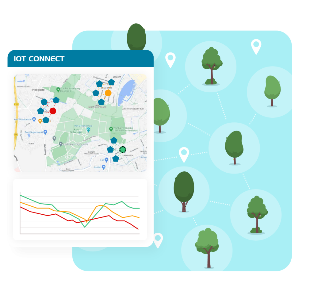 In IoT Connect worden deze gegevens overzichtelijk weergegeven op kaart en dashboard, waardoor beheerders snel kunnen prioriteren en gerichter kunnen sturen op watergift en beheer.