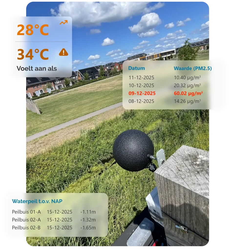 Onze oplossingen helpen provincies om grip te krijgen op de leefomgeving. Met sensoren, data en overzichtelijke dashboards maken we inzichtelijk wat er buiten gebeurt. Zo kan beleid worden gebaseerd op actuele informatie in plaats van aannames en worden keuzes transparanter, beter onderbouwd en effectiever.